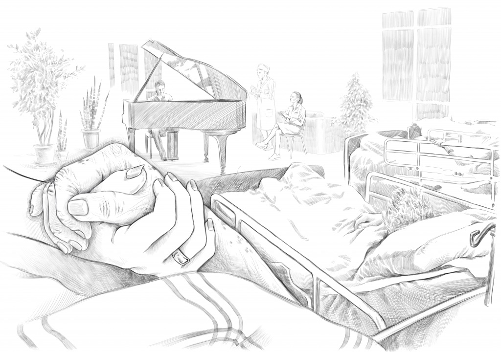 Our patient Liliya Ivanovna used to be an opera singer. She was waiting for her son Leonid, a jazz pianist, to arrive from America. He managed to see his mum and spend some time with her. The next day, while there was a concert in the hospice hall, Liliya passed away. The hospice staff were worried that the music was inappropriate. But musicians are amazing people. In the hospice garden Leonid suddenly said, through his tears, 'The girls played really well. Mum would have enjoyed it'.