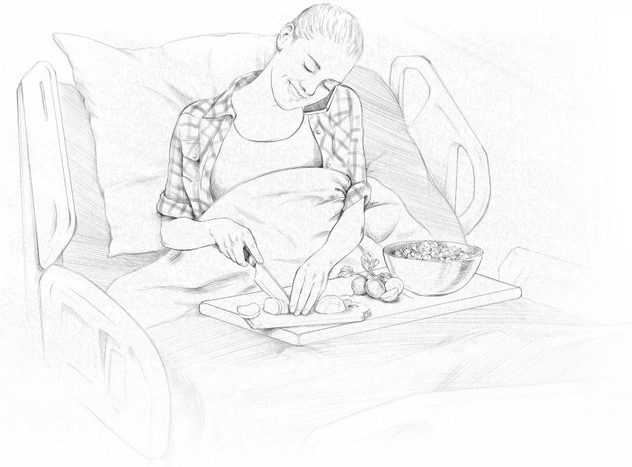 Patients do everything themselves: chopping, mixing, adding kvass or kefir, eating, congratulating each other, laughing. They enjoyed discussing what to make next: pizza, pelmeni or Olivier salad. They say it's boring always eating what they cook for you. We want to cook for ourselves!