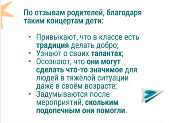 Эта ежегодная традиция показывает детям — в любом возрасте можно помогать тем, кому тяжело. Даже в 4 классе ты уже можешь совершать значимые поступки и влиять на чью-то жизнь. Ты нужен, ценен, полезен. А самое главное — делать добро можно приятно, с удовольствием для себя.