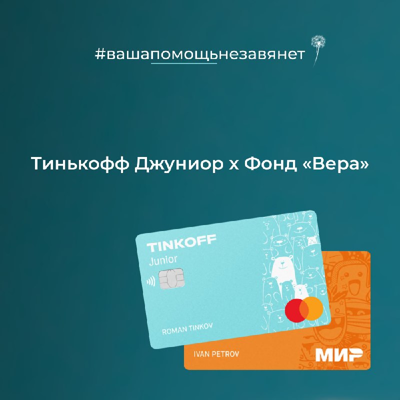 Кроме того, Тинькофф дополнительно перечислит в пользу фондов по 500 рублей за каждого, кто в после сбора оформит карту Тинькофф Джуниор и совершит по ней любую покупку.